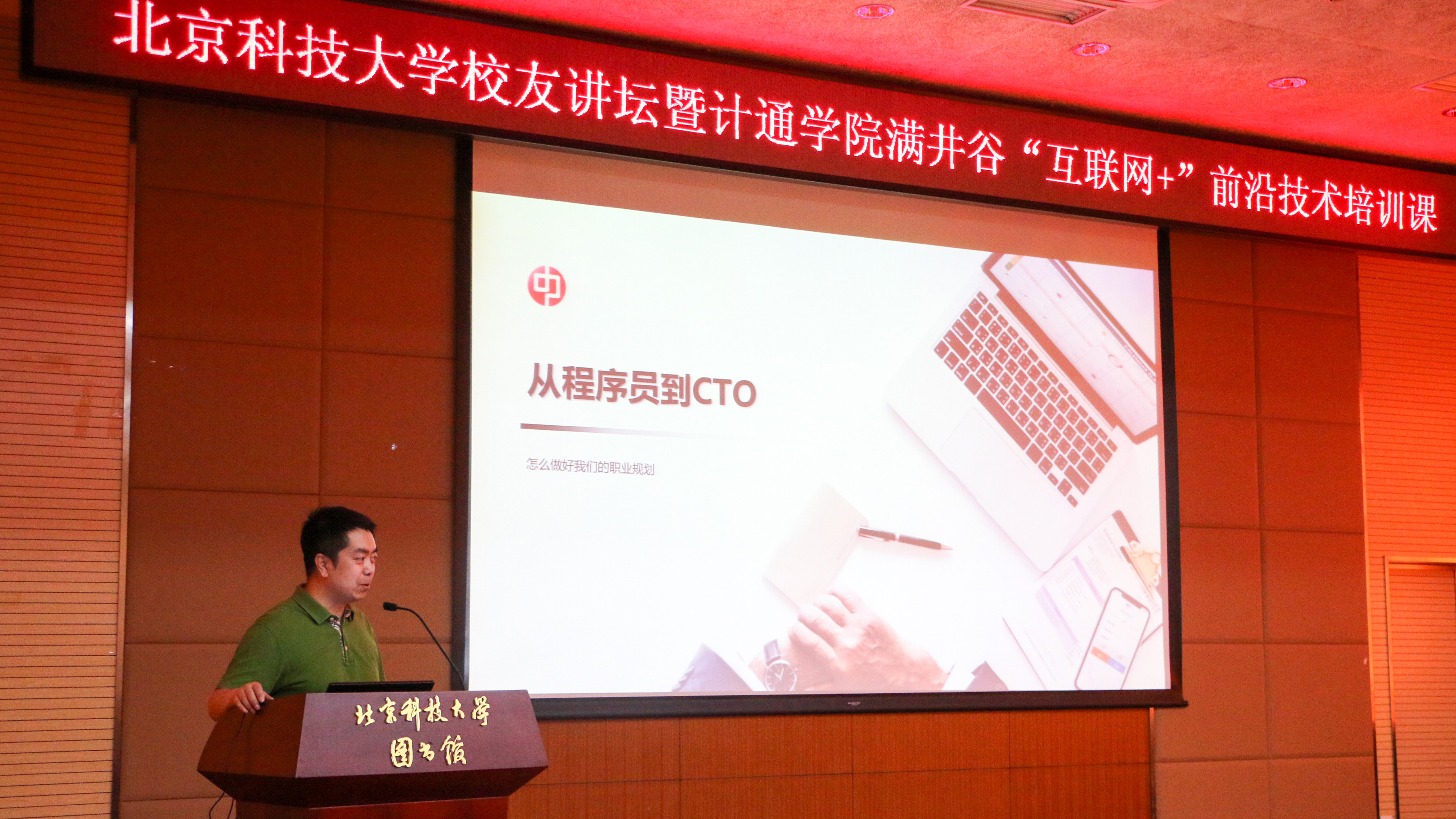 4月16日晚,北京科技大学校友讲坛暨计通学院满井谷‘互联网+’前沿技术培训课在图书馆报告厅顺利举办。本次分享会的主讲人为我校92级计算机专业杰出校友、中林信达科技信息有限责任公司CTO万小昉先生,分享主题为:“从程序员到CTO”。我校计算机与系统科学研究所所长王宗杰、计通学院党委副书记杨健出席此次交流会。