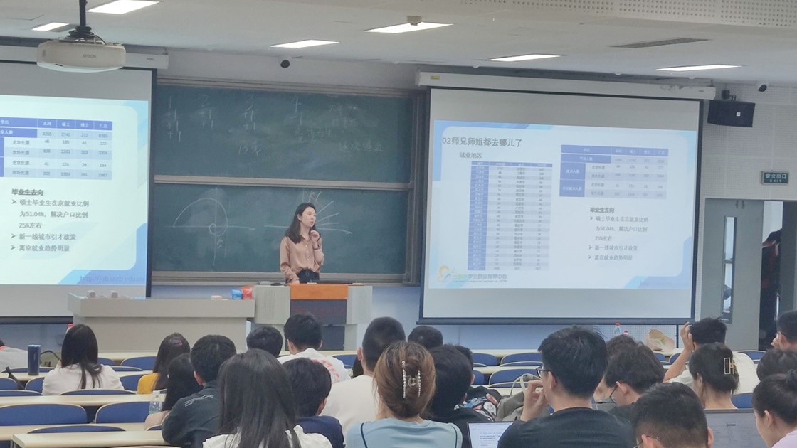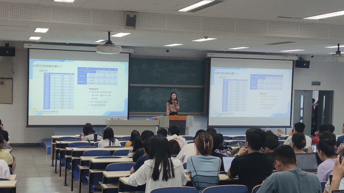 随后,于点老师根据近三年研究生求职过程统计的数据,给出了求职时间点的建议,并且给大家推荐了学校获取就业信息的诸多渠道。在简历制作以及面试准备方面,也结合实例给同学们做了详细展示,并希望同学们进一步提高认识,认清就业形势,及早做好准备。