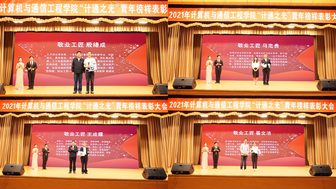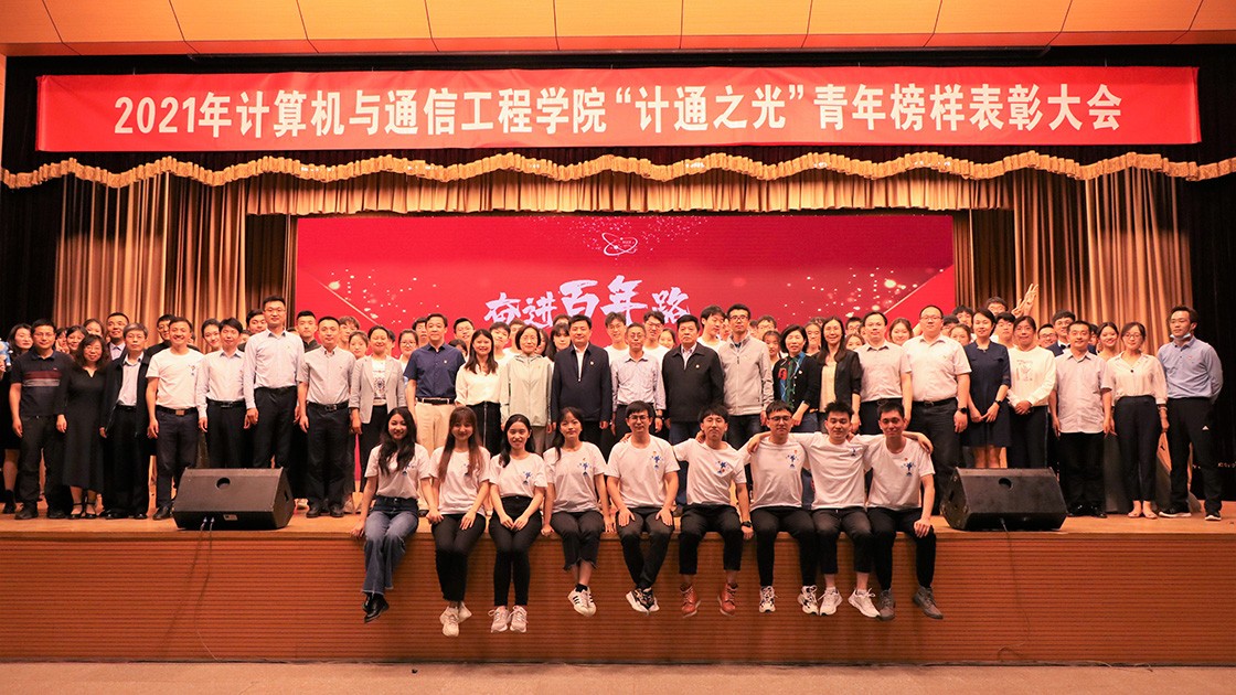 5月26日晚,计算机与通信工程学院2021年“计通之光”青年榜样表彰大会在教职工礼堂隆重举行。党委组织部部长黄武南,党史教育指导六组组长祝利克,教师工作部副部长赵立英,校团委书记王鹂,党委办公室、校长办公室副主任蒋灵斌,教务处副处长陈建,学生工作处、武装部副部长陈大鹏,招生就业处副处长、创新创业中心副主任王丽红,党史教育指导六组成员、统战部副部长倪阳,计通学院院长隆克平,党委书记蒋韬,副院长王建萍,副院长宁焕生,副院长殷绪成,副院长、党委副书记李宁,党委副书记、副院长田斌以及各系所主任、党支部书记、本科生导师代表出席本次大会。