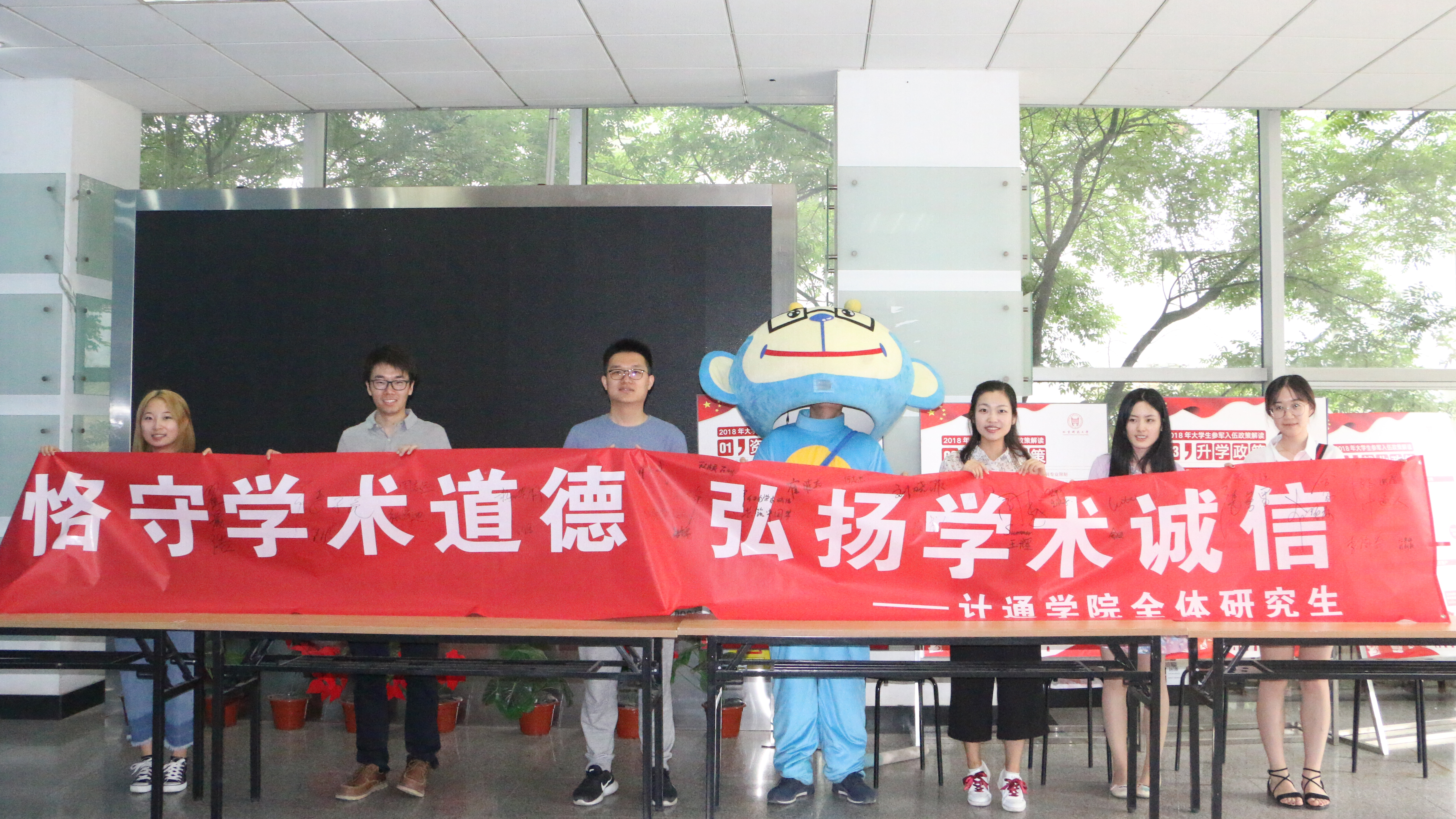 同时,计算机与通信工程学院多位老师参与其中,他们在条幅上郑重签名,承诺学术诚信,他们不仅发扬了“学风严谨,崇尚实践”的优良传统 ,更贱行了“求实鼎新”的校训精神,以端正的学风氛围、严谨的治学态度成为广大计通学子的教师榜样。