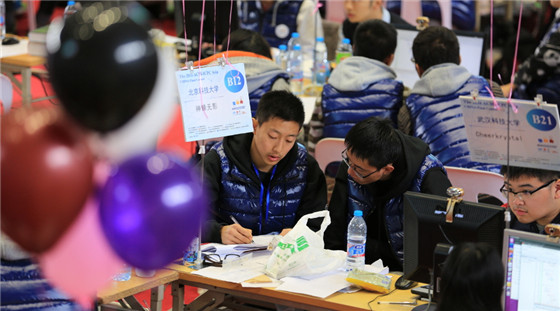 12月11日上午9时比赛正式开始,在经过了5个小时的激烈角逐后,清华大学“深黑幻想”代表队力压群雄,摘得桂冠。我校由计通学院洪源老师指导,物联1301班殷斌一、计算机1302班袁兆麟和计算机1502班陈笑天三名同学组成的“神锋无影”代表队成功解出4题,摘得银牌,由信管132班孙梦瑶、物联1301班李宏扬和安全1402班徐经纬三名同学组成的另一支代表队“时零”也成功解出4题,但用时略多,获得铜牌。