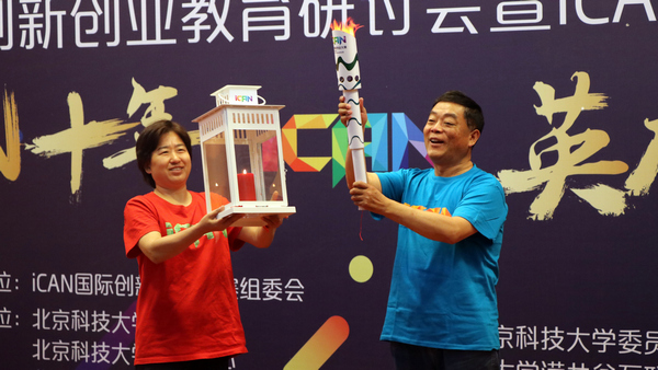 随后,iCAN大赛组委会主席、北京大学教授张海霞手持火种,将iCAN之火传递给iCAN北京赛区组委会主席王志良教授,并由王志良教授传递给各兄弟高校教师代表。iCAN之火寓意iCAN国际创新创业大赛“自信、坚持、梦想”的精神,象征着iCAN人执着的梦想与不懈的追求。