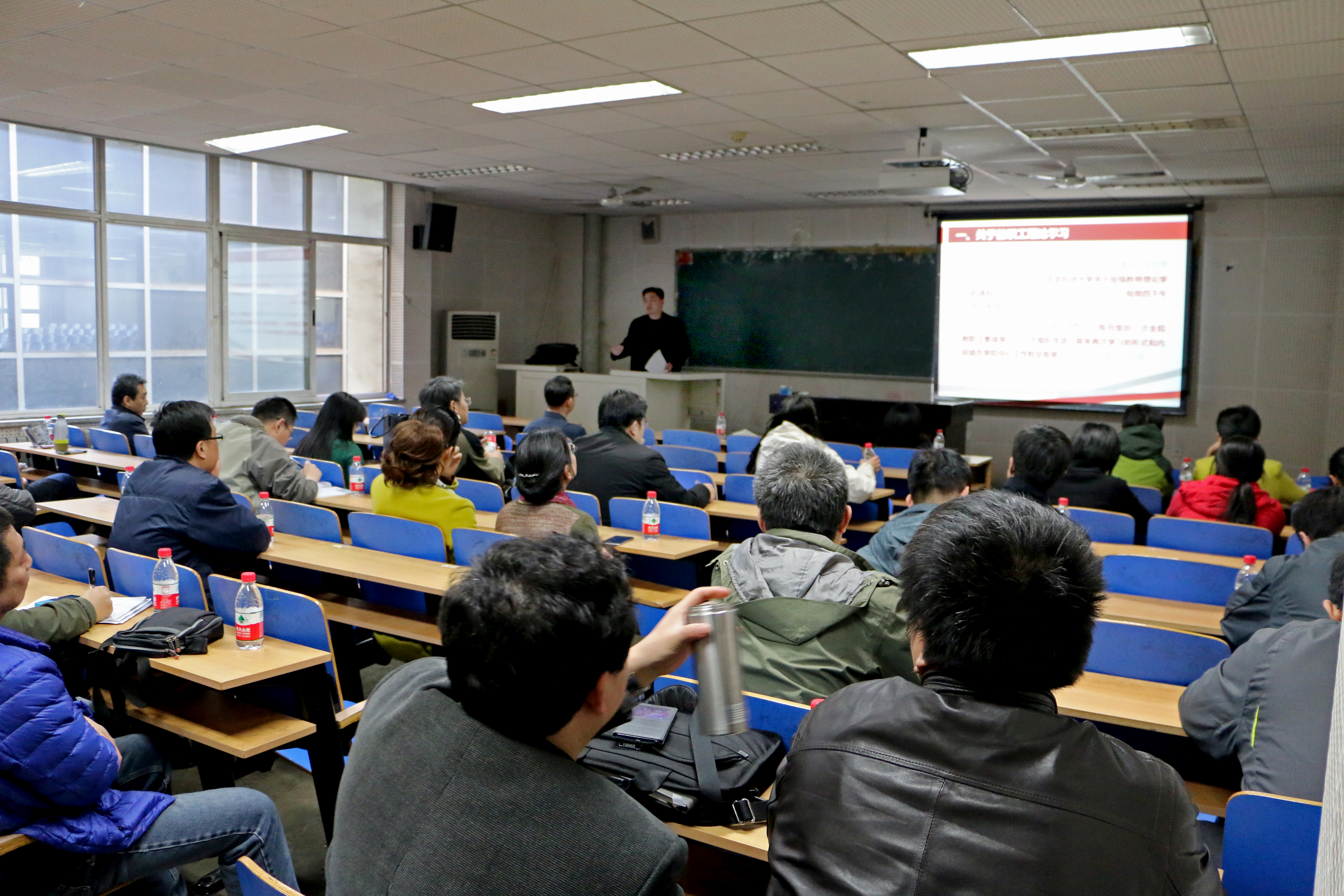 3月24日下午3点20分,计算机与通信工程学院在机电信息楼203举行2016年第一次全体教职工理论学习活动,学习习近平总书记系列重要讲话,传达学校党风廉政会议精神,布置2016年学院重点工作。学院教职工近百人参加了学习活动,大会由学院党委副书记苏栋主持。