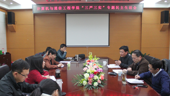 计算机与通信工程学院于1月19日召开“三严三实”专题民主生活会,副校长王维才、学院领导班子成员参加,党委书记黄武南主持会议。