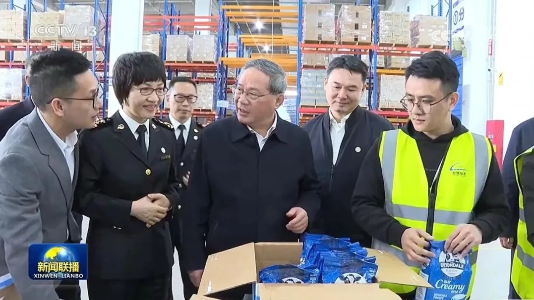 在佛山国际陆港,李强详细了解跨境电商和保税物流发展运营情况。他强调,要坚定不移扩大高水平对外开放,把基础设施“硬联通”和规则标准“软联通”更好结合起来,统筹布局建设科技创新、服务贸易、产业发展等重大开放合作平台,拓展数字贸易、绿色贸易,有序扩大服务领域自主开放,积极扩大进口,推动进出口平衡发展。