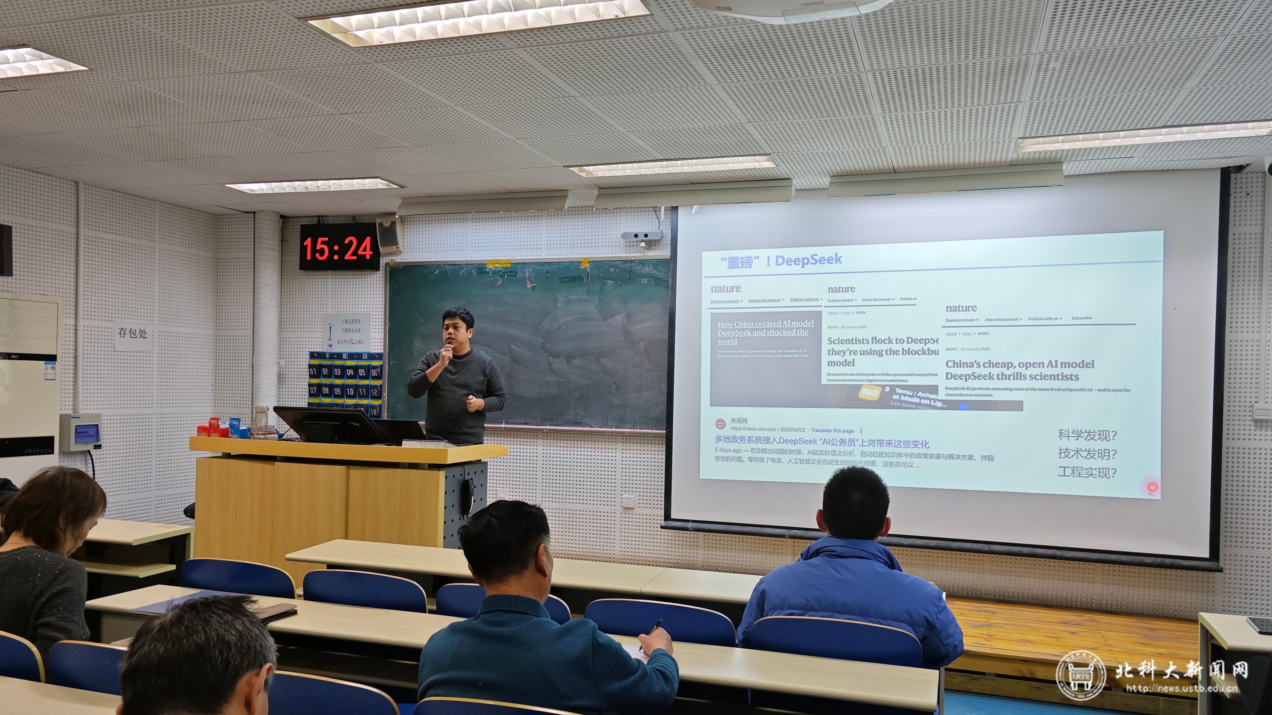 2025年4月10日下午,北京科技大学第446期学生业余党校暨第38期学生党员轮训班开班仪式在逸夫楼104成功举办。马克思主义学院教师朱旭旭,计通学院党建专项工作辅导员吴思婕、孙天乐,党校各班班主任、全体轮训班党员以及入党积极分子参与此次活动。开班仪式由辅导员郑涵瑀主持。开班仪式在庄严的国歌声中拉开帷幕。郑涵瑀首先介绍了本次活动的主要议程,孙天乐宣读党校组织机构和班主任名单。郑涵瑀宣读了党校培训内容和培训要求...